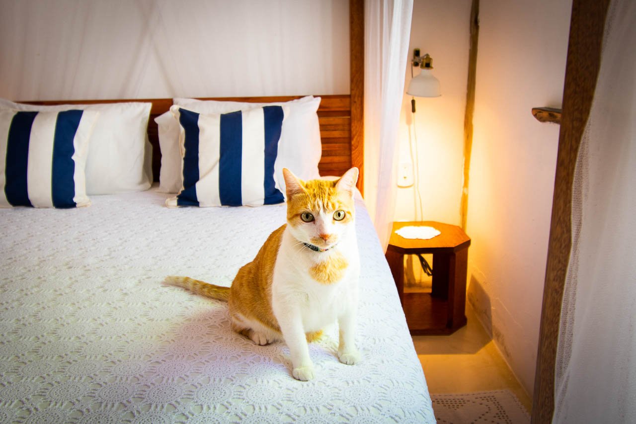 Equipada com ar-condicionado, frigobar, Smart TV, Wi-Fi, cama queen-size com cortinado, mesa de trabalho, espelho de corpo inteiro e secador de cabelo semiprofissional, a suíte combina praticidade e bem-estar em cada detalhe.